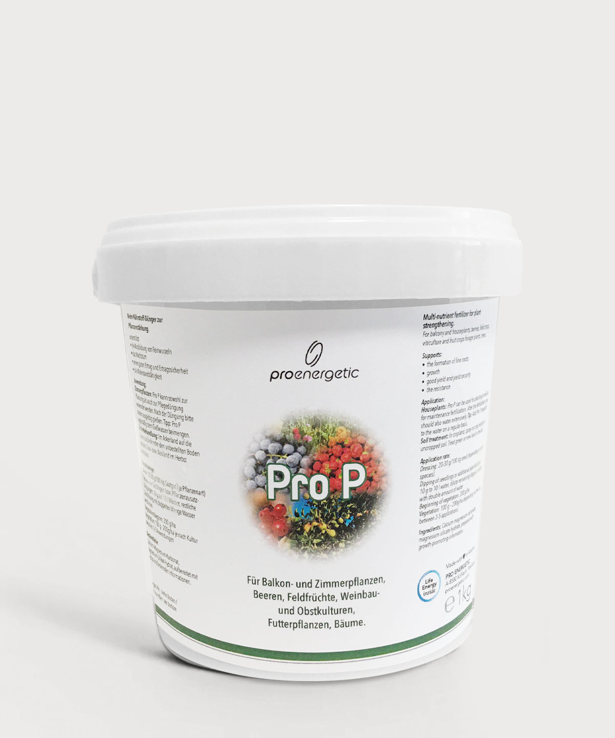 The formulation is based on calcium-magnesium carbonate and magnesium silicate hydrate – natural minerals valued for their structural properties. Processed in the company's own Life Energy Inside method, Pro P is understood as a complementary component within a holistic plant and soil concept.